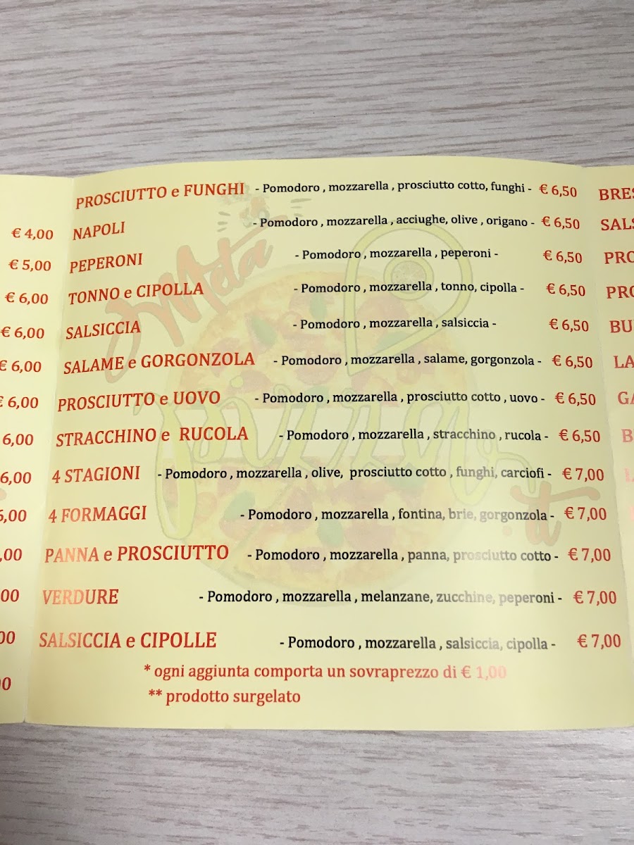 Visitors can expect the menu to be structured mainly around the pizza category, with possible variations in dough type and toppings reflecting local culinary influences.